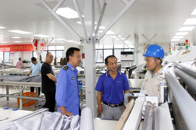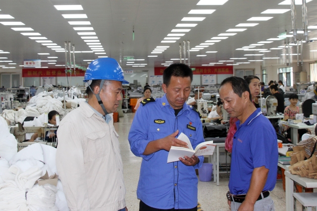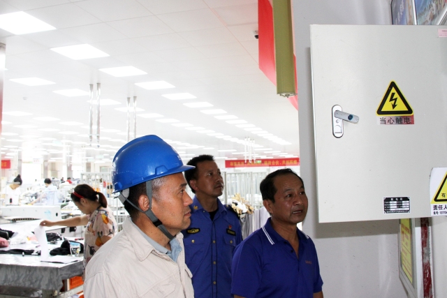 9月8日,国网高邮市供电公司界首供电所员工联合界首镇安监部门人员前往扬州国联制衣有限公司界首分公司生产车间,检查电气设备安全,向企业电工宣传新版《中华人民共和国安全生产法》,以保障企业在中秋节期间安全可靠用电。