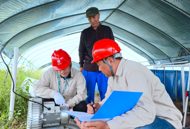 “包师傅,大棚养殖水蛭的用电线路和增氧机电设备一定勤检查,发现安全隐患要及时报修处理……”9月14日,在江苏宿迁市泗洪县双沟镇迎淮村示范园里,国网宿迁供电公司双沟供电所“电暖流”服务站队员李磊、刘元兵正在对10千伏双河134线迎淮示范园变进行特巡,为养殖户包士解“义诊”用电线路和增氧机电设备,现场指导安全用电、节约用电,为养殖户提供专业、优质的电力“暖心”服务。