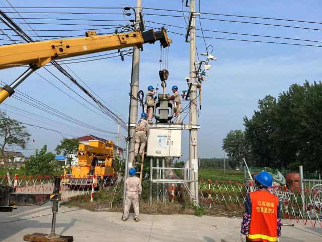 “小心后面的横担,再往左边移一点点,好,慢慢放下……”9月19日上午8时许,在宝应县曹甸镇崔堡村,国网扬州宝应县供电公司曹甸供电所组织施工人员,顺利完成曹甸镇崔堡村三环路东配变由200千伏安增容至400千伏安的升级改造任务,为该台区下扬州楚楚科教设备有限公司等5户玩具小微企业提供充足电、致富