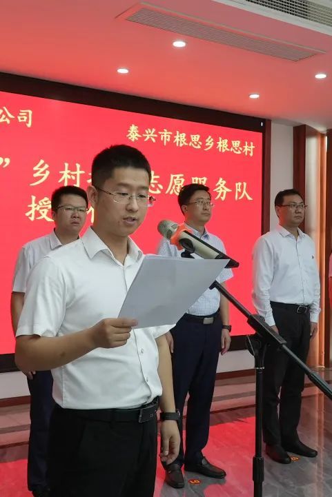 9月16日,国网泰兴市供电公司、泰兴市根思乡根思村“金扇叶”乡村振兴志愿服务队正式成立。根思乡党委书记周伟,泰兴公司党委书记蔡华东,泰州公司营销部书记燕鑫炜,根思村“第一书记”陆杰等出席授旗仪式。