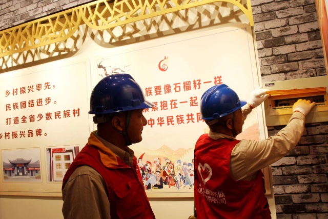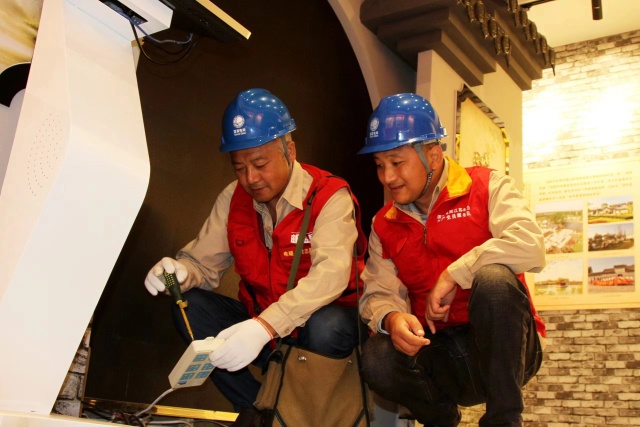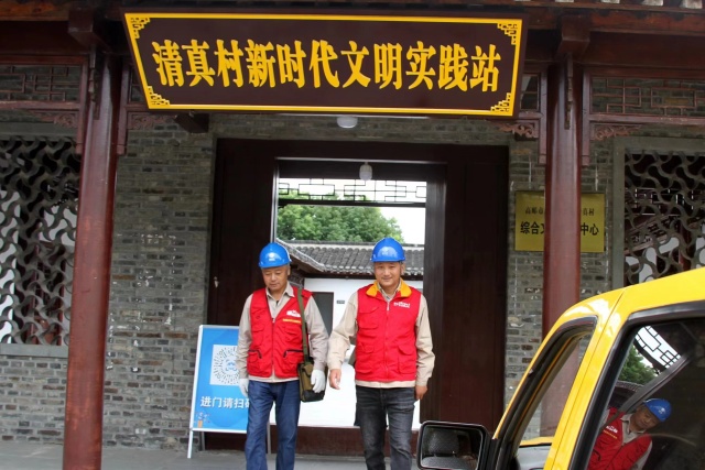 国庆期间,国网高邮市供电公司菱塘供电所驻高邮市菱塘回族乡清真村供电服务点人员前往清真村新时代文明实践站,义务检查和维护用电设备,确保这个回民村新时代文明实践站在国庆接待游客期间安全可靠用电。