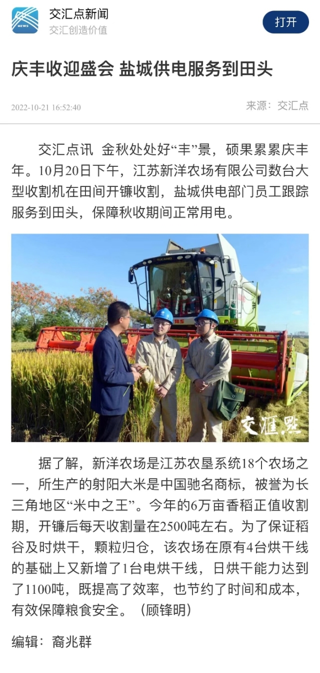 交汇点:庆丰收迎盛会 盐城供电服务到田头-东台报业网