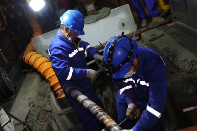 停电施工期间,电缆通道内停电电缆、运行电缆和新放电缆交错混杂,进行停电电缆割接作业安全风险大。施工人员时刻绷紧着神经,将需要割接的三根电缆,使用专用电缆管线识别仪器进行一一识别,并逐根仔细核实做好标记,以防出现割接错误等重大失误。同时,施工人员还争分夺秒地将核对后的电缆切割、迁移、制作电缆绕包头,按照施工方案有条不紊地完成各条迁改电缆的试验和恢复供电前的各项工作。