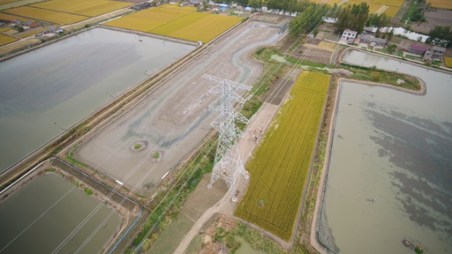 潘荡-东益220千伏线路工程起于500千伏潘荡变电站扩建间隔,止于220千伏东益变电站,新建铁塔134基,路径全长46.493千米。该工程于2020年6月开工,目前134基基础与铁塔已全部完成,架线施工已完成80%。工程建成投运后,可加强盐城北部地区电网调节能力,增强盐城地区的供电可靠性。
