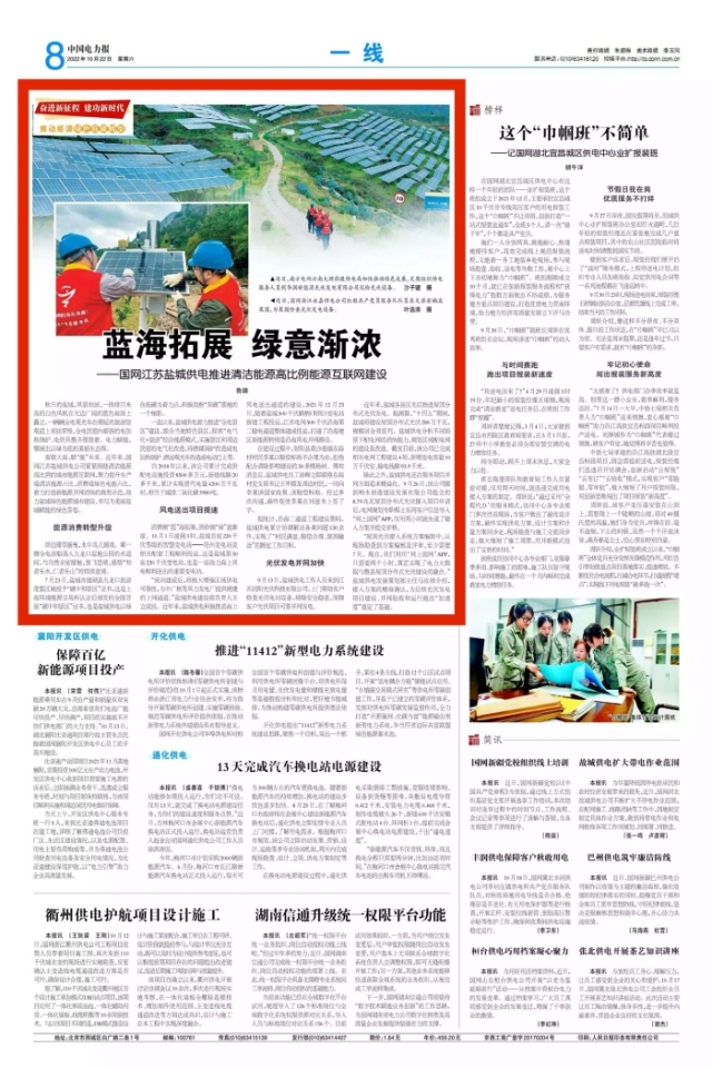 中国电力报:蓝海拓展 绿意渐浓——国网江苏盐城供电推进清洁能源高比例能源互联网建设