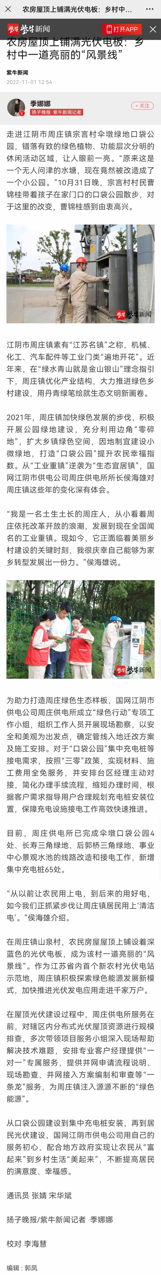 11月1日,《紫牛新闻》刊发了《农房屋顶上铺满光伏电板:乡村中一道亮丽的“风景线”》。