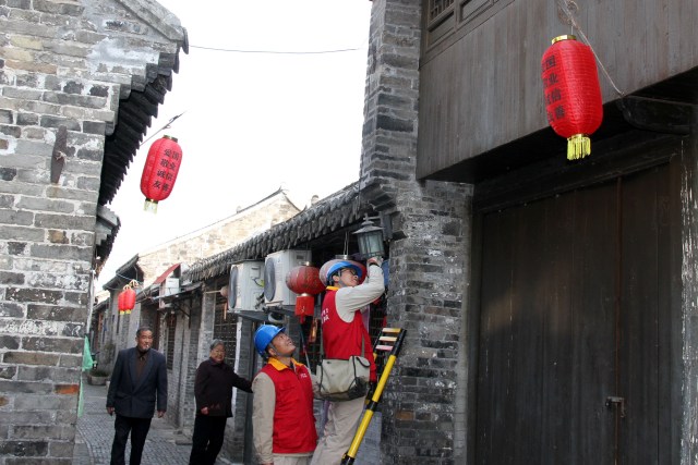 扬州高邮公司:供电党员服务队义务维护古镇老街路灯