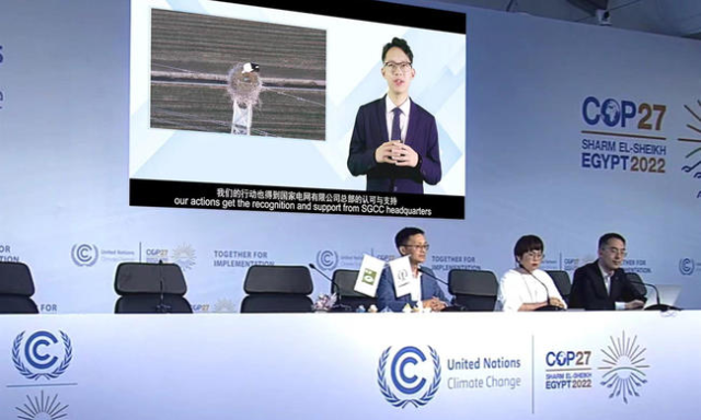 11月6日至18日,第二十七届联合国气候变化框架公约第27届缔约方会议(COP27)在埃及沙姆沙伊赫举办。10日23时(埃及时间17时),在COP27新闻发布间,国网高邮市供电公司青年员工朱杰作为中国参会代表,以视频形式分享了供电人“护线爱鸟”的典型案例。