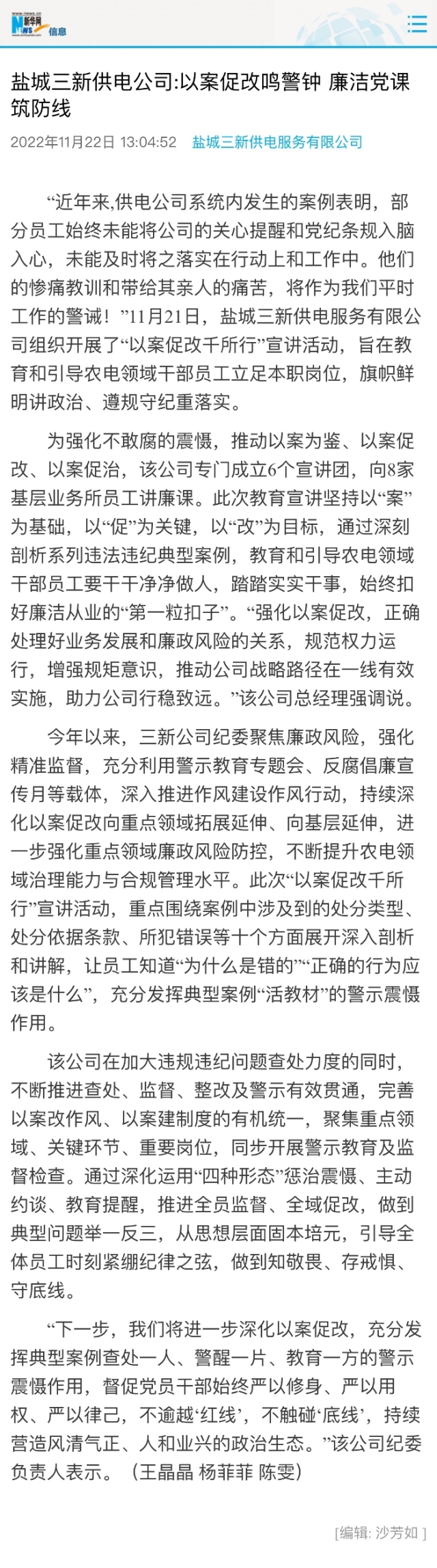 盐城三新供电公司:以案促改鸣警钟 廉洁党课筑防线-东台报业网
