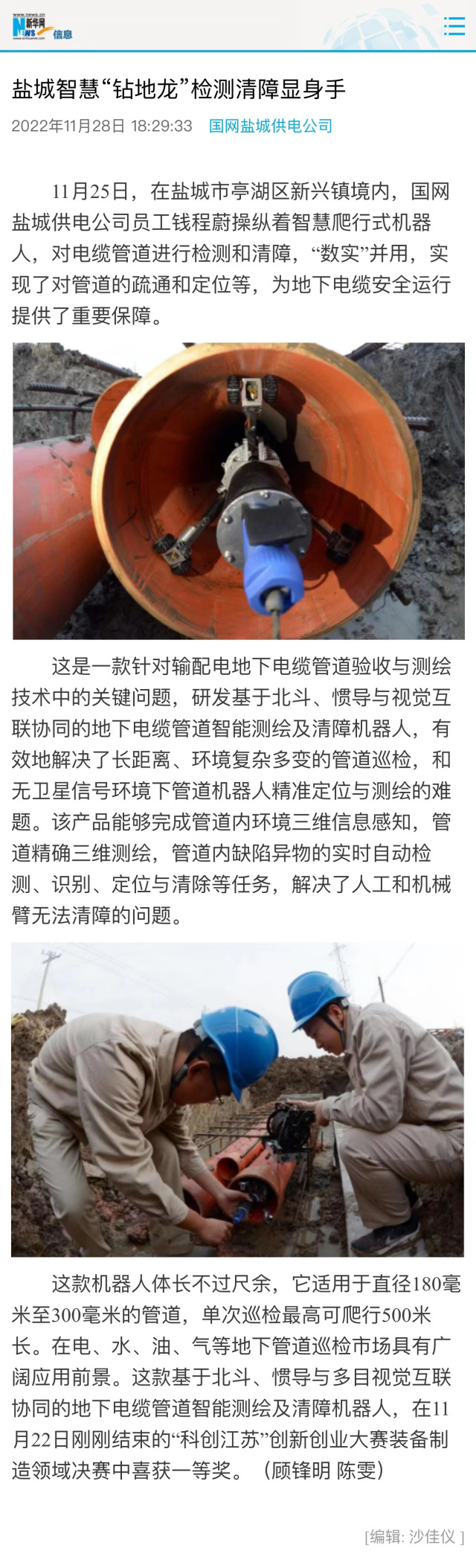 新华网:盐城智慧“钻地龙”检测清障显身手