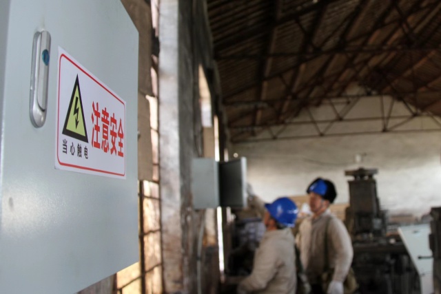 这家企业全名为高邮市花阳机械有限公司,已生产经营26年,现有工人80多名,主要生产机床床身、机械轴等机械零部件产品。该企业在花阳村花阳集镇6号公用变压器上用电,有8个生产车间,每个车间都设7至10个电源点。二十几年前,该企业负责人刘玉网考虑到经济因素,对电源点的设立采取了简单的办法,即在车间内的墙面上钉上一块块木板,再在木板上安装断路开关、插座等设备。
