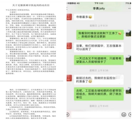 12月25日,公司党委发出关于“做好健康第一责任人 尽快返岗复工复产”的倡议,中心党支部迅速响应,第一时间发出动员信,动员中心全体人员克服困难尽快返岗。公司领导及中心负责人带头站在防疫保电第一线,恪尽职守,坚守岗位。