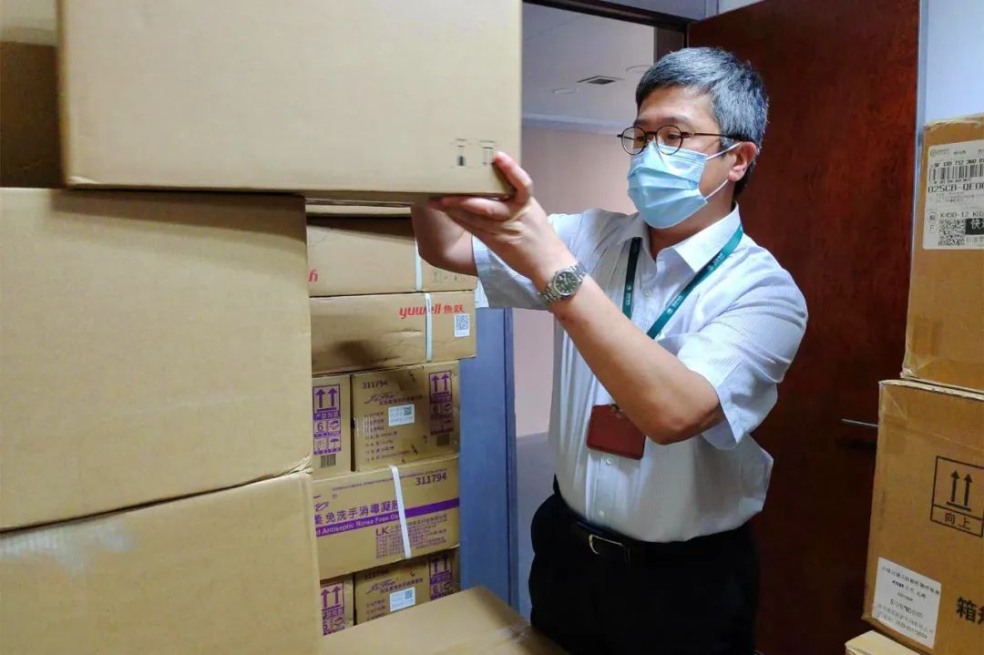 每天早上8点我去给大家领早饭,尽量多拿些高蛋白的食物,提高免疫力。保洁师傅晚上下班后,我会在夜里12点对办公室增加一次消杀,尽量减少班组继续“减员”的可能。还有矿泉水、消毒液,我一箱箱地扛……