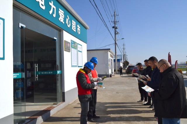 1月16日,国网扬州宝应县供电公司夏集供电所党员服务队员荣峰、陈瑞宏,来到宝应县夏集镇三洋河村“电力爱心超市”门口,通过散发电力设施保护知识、安全用电知识等宣传图画,宣传安全用电知识,引导当地农户加强电力设施保护、提高安全用电意识。同时,引导农户积极参与活动赢积分、兑换“电力爱心超