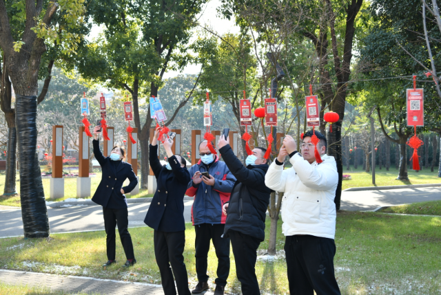 近日,为营造欢乐祥和的节日氛围,国网宿迁供电公司举办新春嘉年华系列活动。本次活动主要有红色文化答题、廉政猜谜、掼蛋比赛、趣味套圈等,通过各种各样的趣味活动,进一步丰富员工文化生活。图为廉政猜谜现场,该公司员工正在用手机扫描灯谜参与答题。