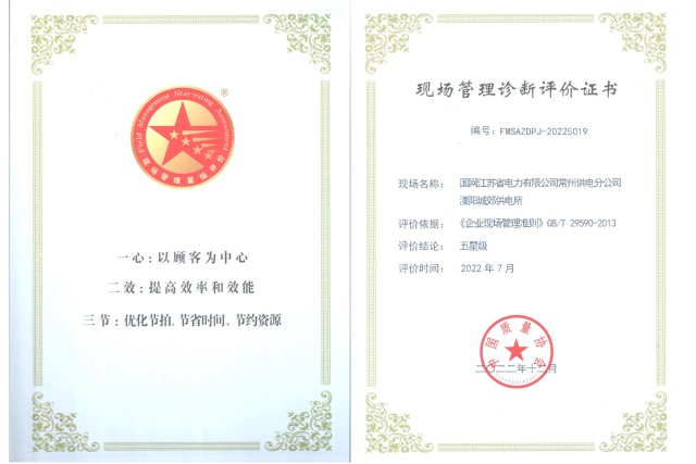 近日,中国质量协会发布了2022年企业现场管理评审结果,国网溧阳市供电公司卓越绩效管理工程《以服务质量提升为导向的绩效管理建设》喜获“五星级”企业现场管理称号,这是常州公司首次获得该奖项。