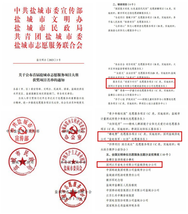 国网盐城供电公司获评盐城市多个志愿服务类荣誉