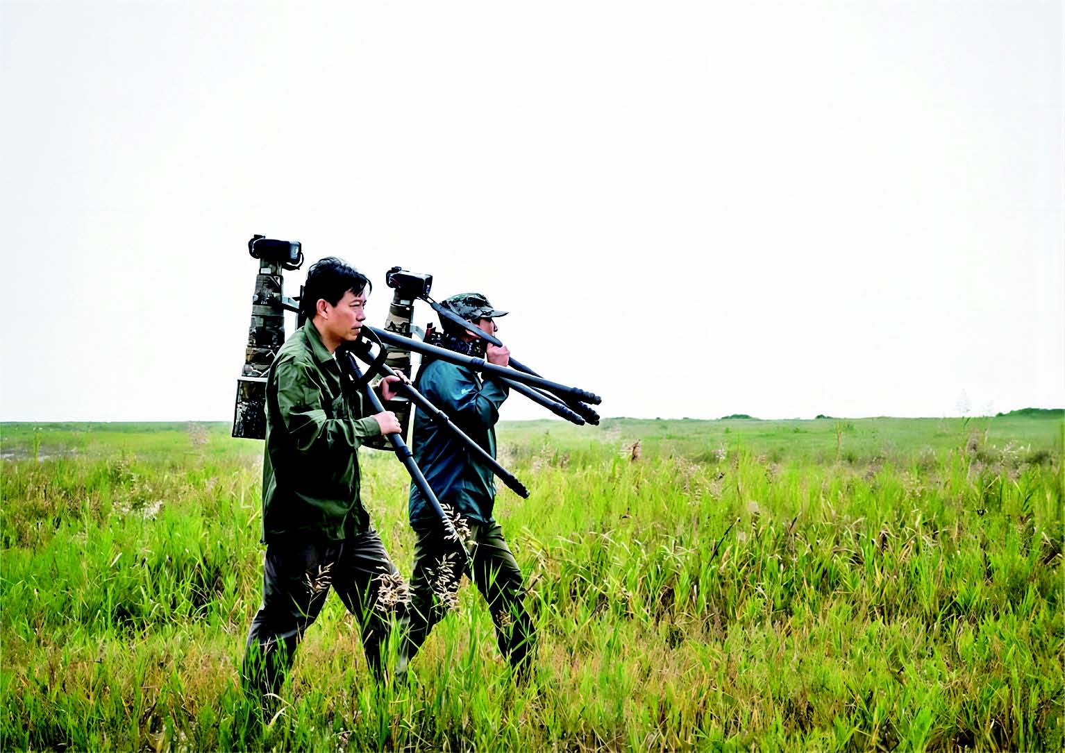 李云峰(左)和摄影俱乐部成员前往拍摄地