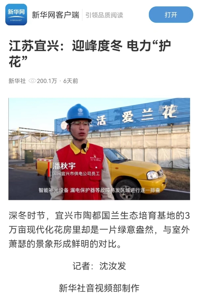 《新华网》:江苏宜兴:迎峰度冬 电力“护花”