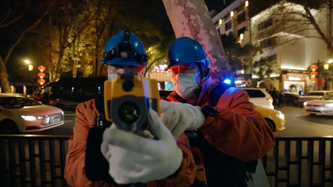 随着高射灯的开启,一束强光投向大成殿,游客脚下的街道路面瞬间变得更加清晰。张代飚和队员们忙碌的节奏没有放慢。拎起便携检测设备,便赶往夫子庙石坝街开关站和琵琶街箱式变电站。