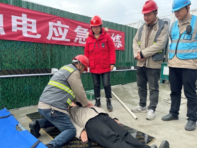 在项目现场,项目经理组织监理、施工项目部及核心班组成员召开复工收心会,按照复工“七步法”以及复工复产五项条件的要求,对计划准备情况、关键人员到位情况、作业人员进场情况、培训考试情况、隐患排查情况等进行了逐项核查,审核复工资料、开展应急演练、布置下阶段工作安排。在易南110kV变电站新建工程现场,项目经理贲洲敏组织指导急救演习。“安全生产重于泰山,必须正确掌握急救措施,通过开展收心会和应急演练,可以让大家迅速绷紧安全这根弦,快速进入工作角色。”
