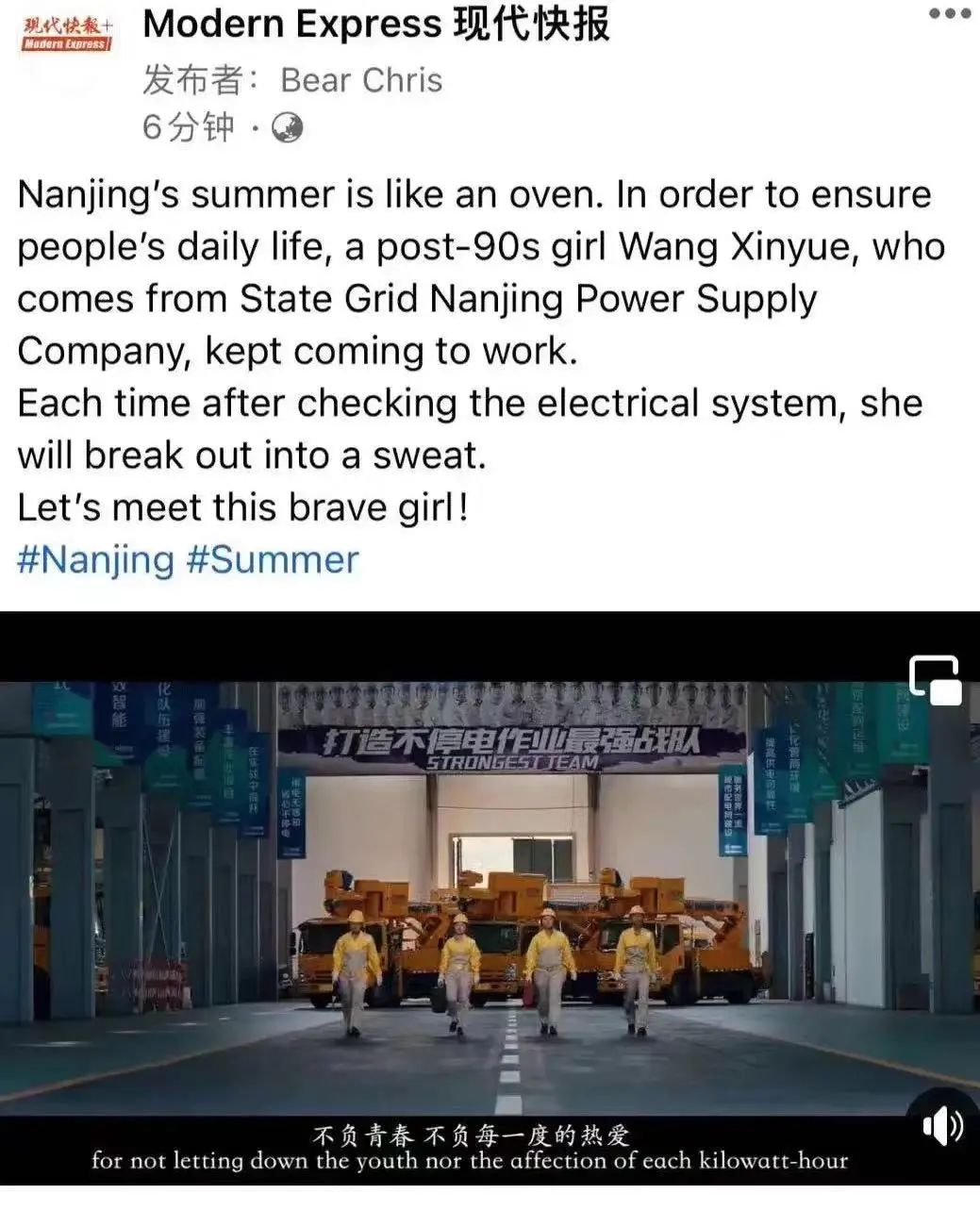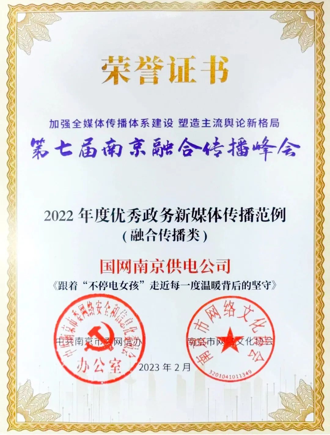 “国网南京供电公司”微信视频号荣获