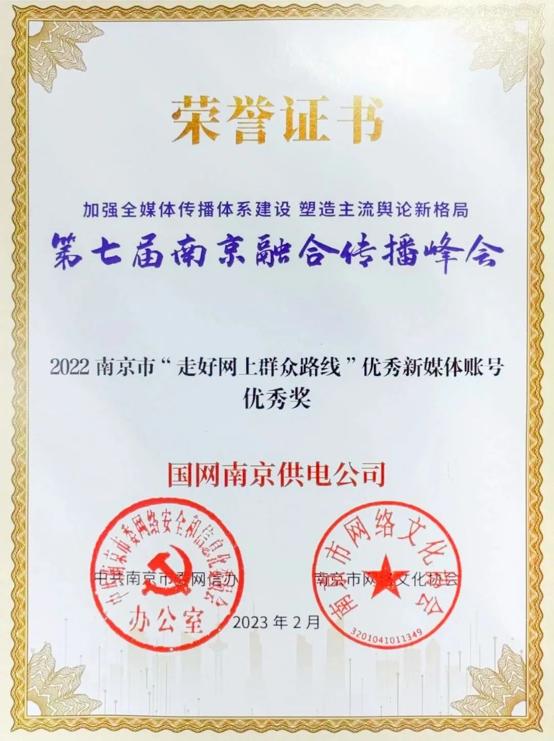 近年来,我们顺应互联网“主战场”新形式,不断提升传播效果和服务效能,构建了集微信公众号、视频号、微博、抖音、B站的全媒体发布平台矩阵,精雕“国网南京供电公司”品牌,形成了兼具主流价值和创新活力的内容生态,谱写了“内鼓干劲”和“外树形象”的协奏曲。公司许多职工成为了我们的忠实读者,此次获奖也展现了社会公众对我们的肯定。