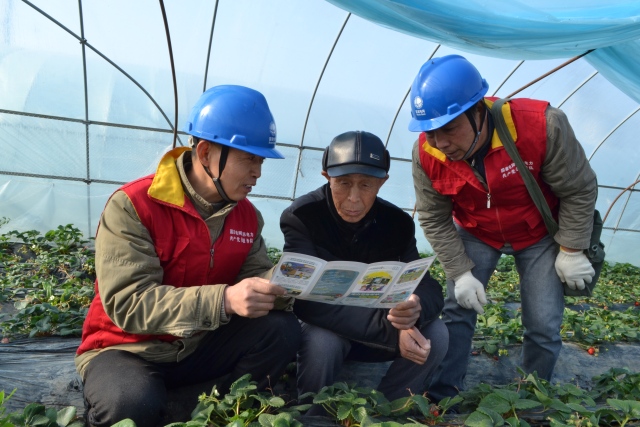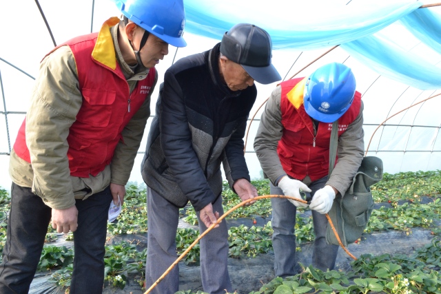 在夏集镇蒋庄村草莓种植园,工作人员向陆彩桂宣传安全用电知识、安装漏电保护器的重要性,指导他如何正确使用用电设备,征询用电需求。同时,义务为草莓园检查用电线路及设备,帮助排查消除用电安全隐患。