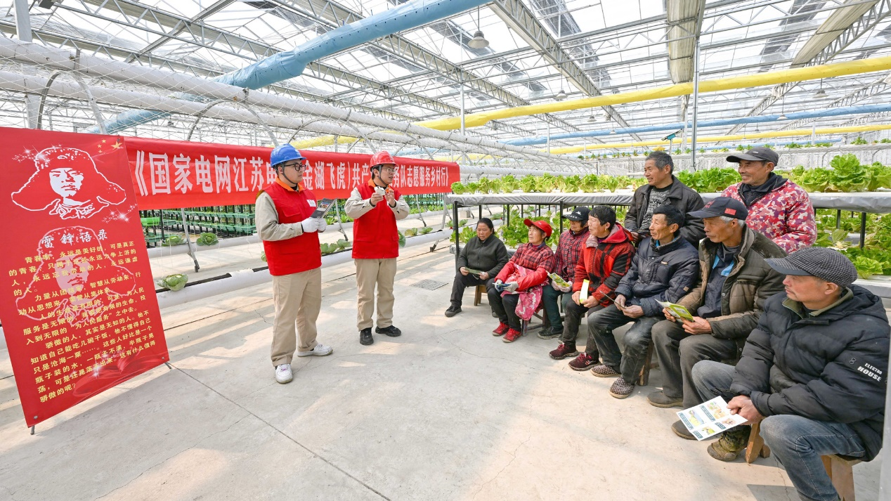 3月1日,在国网金湖县供电公司组织下,吕良供电所副所长、国网江苏电力(金湖飞虎)共产党员服务队队员邹禹带领5名青年志愿者,来到吕良镇新丰村的金绿源现代农业产业园,向村民宣讲电气化大棚用电安全知识,并帮助义务排查园区用电设施的安全隐患。(梁德斌 张如春)