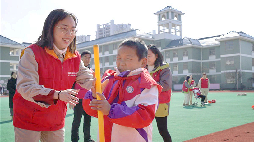 3月5日,国网江苏电力(如东公司退役军人)共产党员服务队走进如东县逸夫特殊教育学校,为患有自闭症、唐氏综合症等特殊病症的儿童举办“电力蜗牛”运动会,陪伴他们健康成长。(李冰清 张浩)