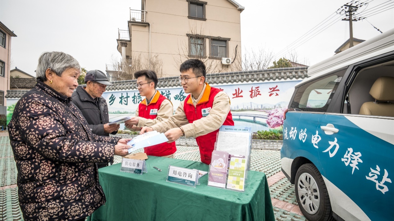 3月2日,在国网南京市高淳区供电公司组织下,古柏供电所青年志愿者来到古柏街道凤袁村,开展“流动的电力驿站”进乡村活动,向村民宣讲安全用电知识,并开展用电需求征集、用电问题咨询等服务。(邢鹏)