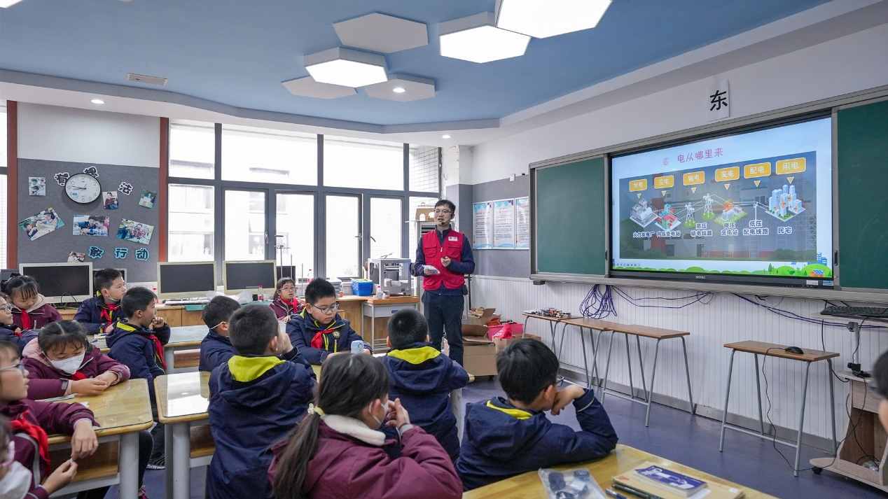 3月1日,国网江苏电科院联合江苏省电机工程学会,组织“电博士”共产党员服务队、“智慧芯”青年志愿服务队走进南京市金陵汇文小学,给四年级2班的40余名同学上了一堂“电与生活”主题科普课。这是电科院连续第10年开展电力科普进校园活动。(徐恬恬 叶迪卓然)
