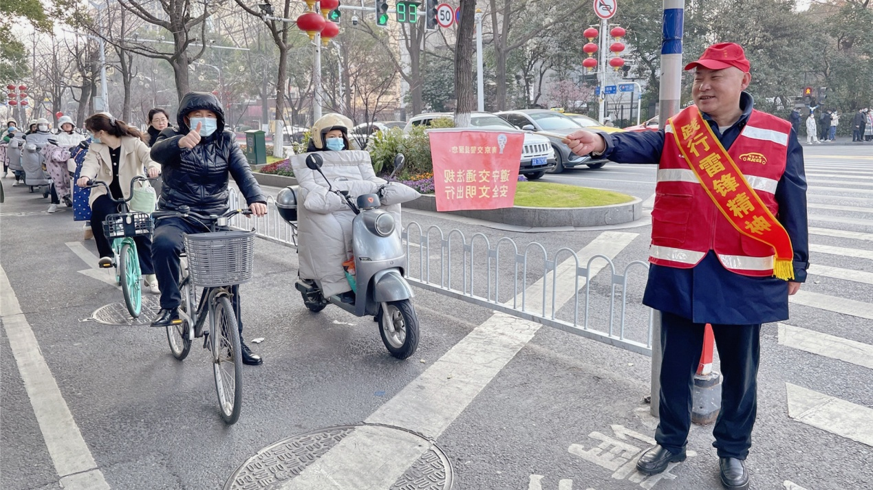 3月3日上午,苏星公司交通服务中心、南京市交警五大队联合开展“践行雷锋精神 倡导文明交通”志愿服务活动。该公司志愿者来到北京西路人流车流最密集的3个路口,协助交警维持交通秩序。(杨玥)