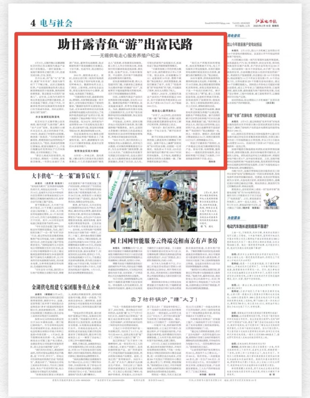 《江苏电力报》:助甘露青鱼“游”出富民路——无锡供电走心服务养殖户纪实