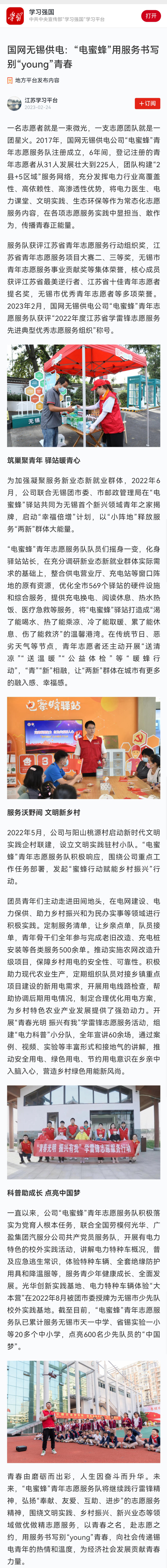 《学习强国》:国网无锡供电:“电蜜蜂”用服务书写别“young”青春