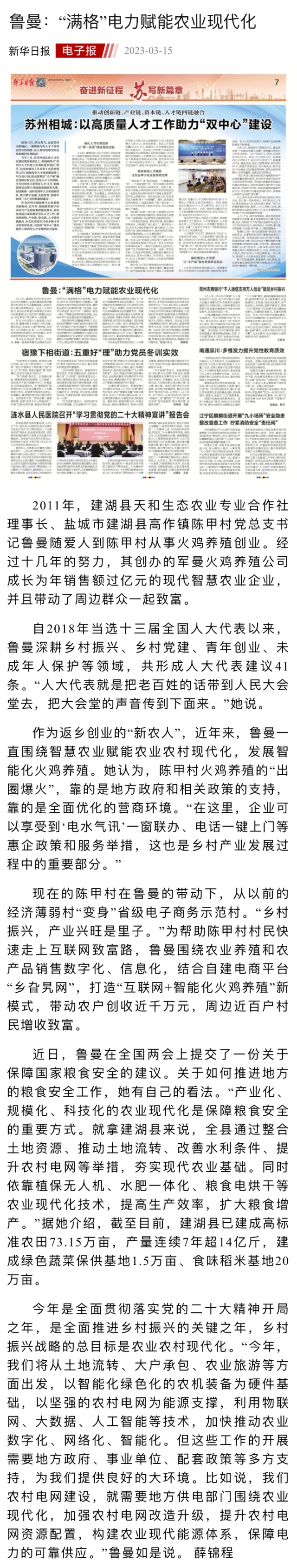 新华日报:鲁曼:“满格”电力赋能农业现代化