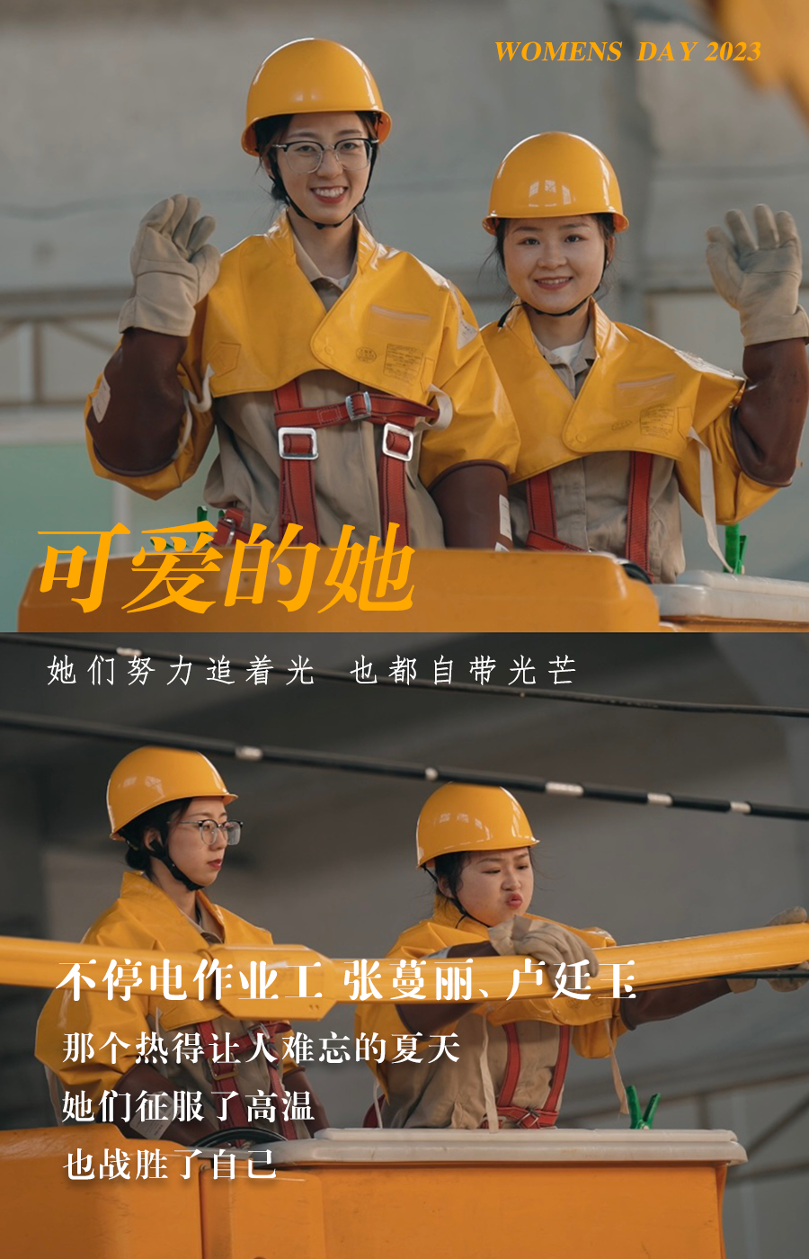 在“家家户户都离不开空调”的日子里,为了保障居民可靠用电,不停电作业女孩们总坚守在烈日下或严寒里。“几乎没人见过女孩子干这行”,但她们一路相互陪伴、帮助和鼓励,一同披上黄色“战袍”、登上斗臂车,成为守护光明的女战士。