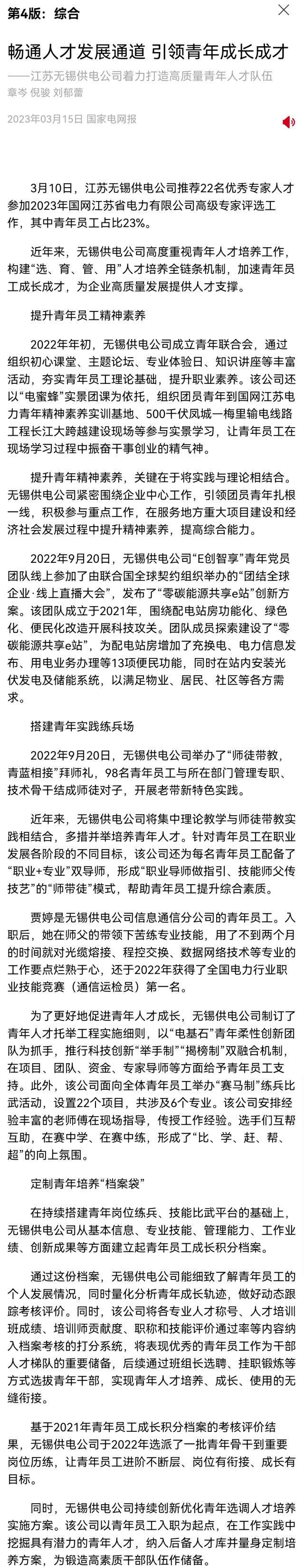 《国家电网报》:畅通人才发展通道 引领青年成长成才——江苏无锡供电公司着力打造高质量青年人才队伍-东台报业网