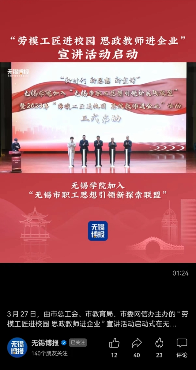 《无锡博报》:“劳模工匠进校园 思政老师进企业”宣讲活动启动(何光华)