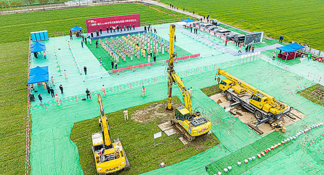 图为输电工程首基杆塔基础施工开工现场3月21日,扬州一镇江交流改直流输电工程线路开工仪式在宜陵镇白塔村举行。扬州—镇江直流输电工程,是我国首个交流改直流输电工程,该工程利用五峰山大跨越,将交流输电改造为直流输电。五峰山大跨越是江苏首条跨江的220千伏输电通道,此次改造工程可将五峰山大