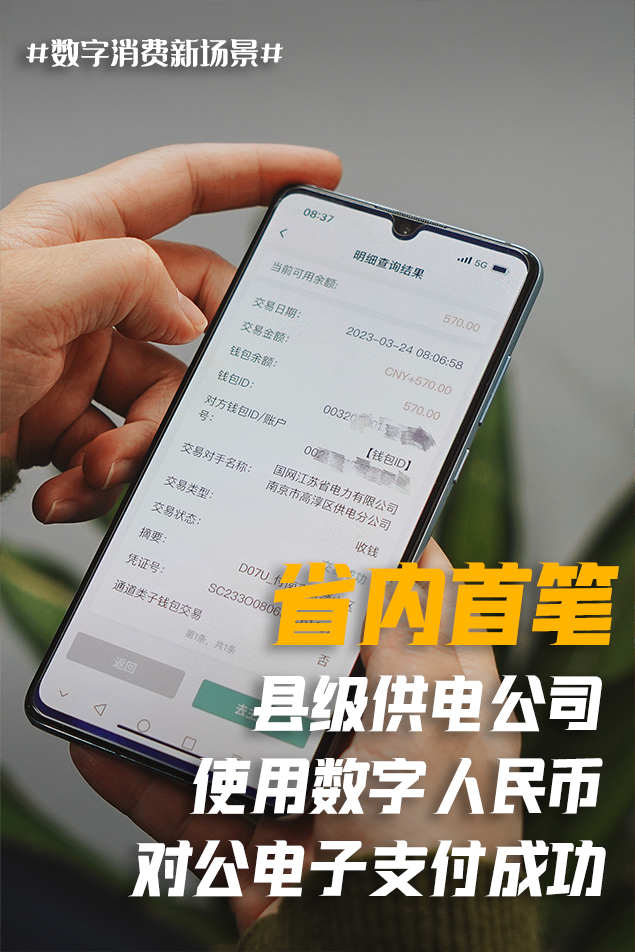 3月24日,国网南京市高淳区供电公司通过数字人民币成功对外支付一笔电器维修款项,率先在江苏省县级供电企业范围完成首笔数字人民币对外电子支付。“没想到这笔维修款这么快就到账了,数字人民币真是高效又便捷。”南京明胜电器公司负责人杨经理看到收款信息后满是惊喜。