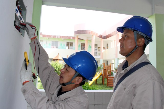 4月17日,国网高邮市供电公司卸甲供电所员工前往卸甲镇卸甲幼儿园,帮助检查和维护用电线路,并对用电箱内接错的零线进行调整,以保障幼儿园内安全可靠用电。