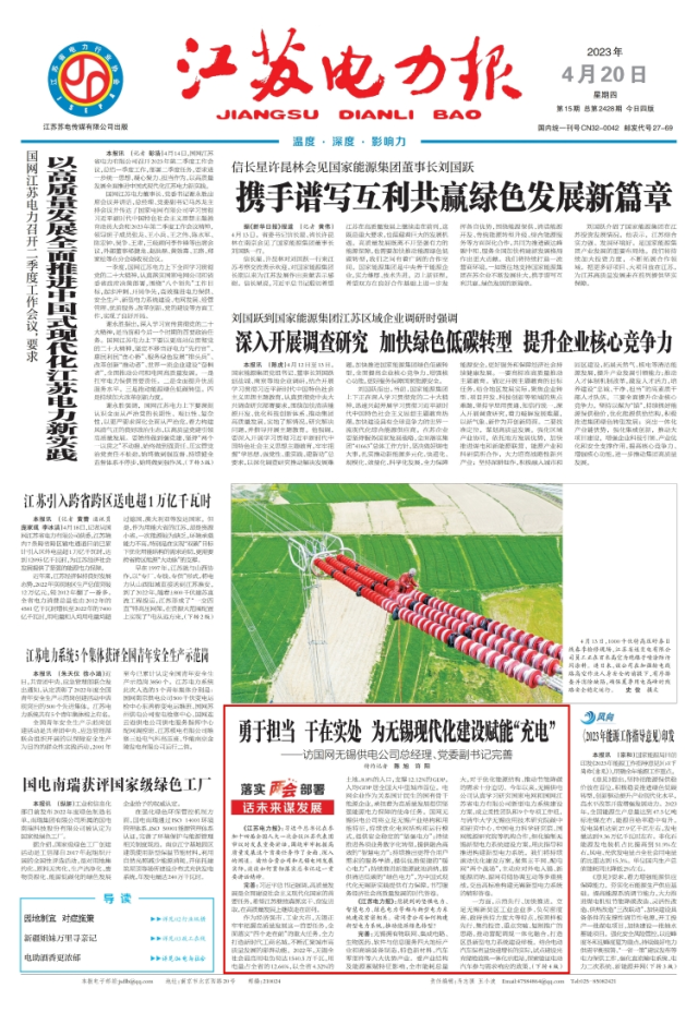 《江苏电力报》:勇于担当 干在实处 为无锡现代化建设赋能“充电”——访国网无锡供电公司总经理、党委副书记完善
