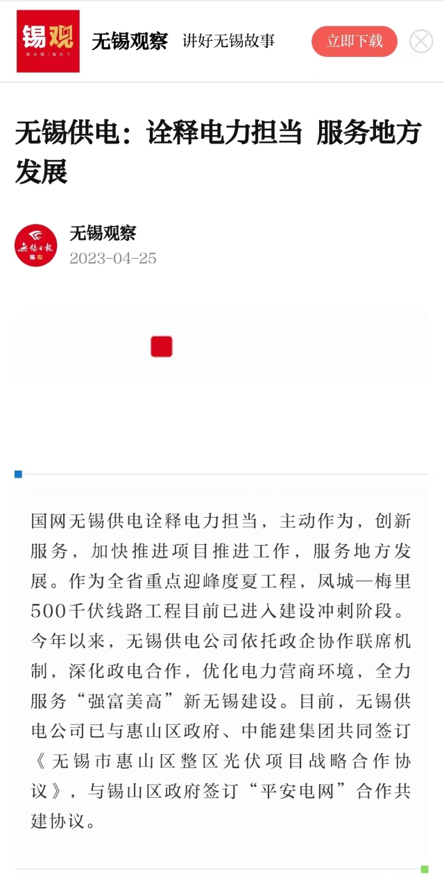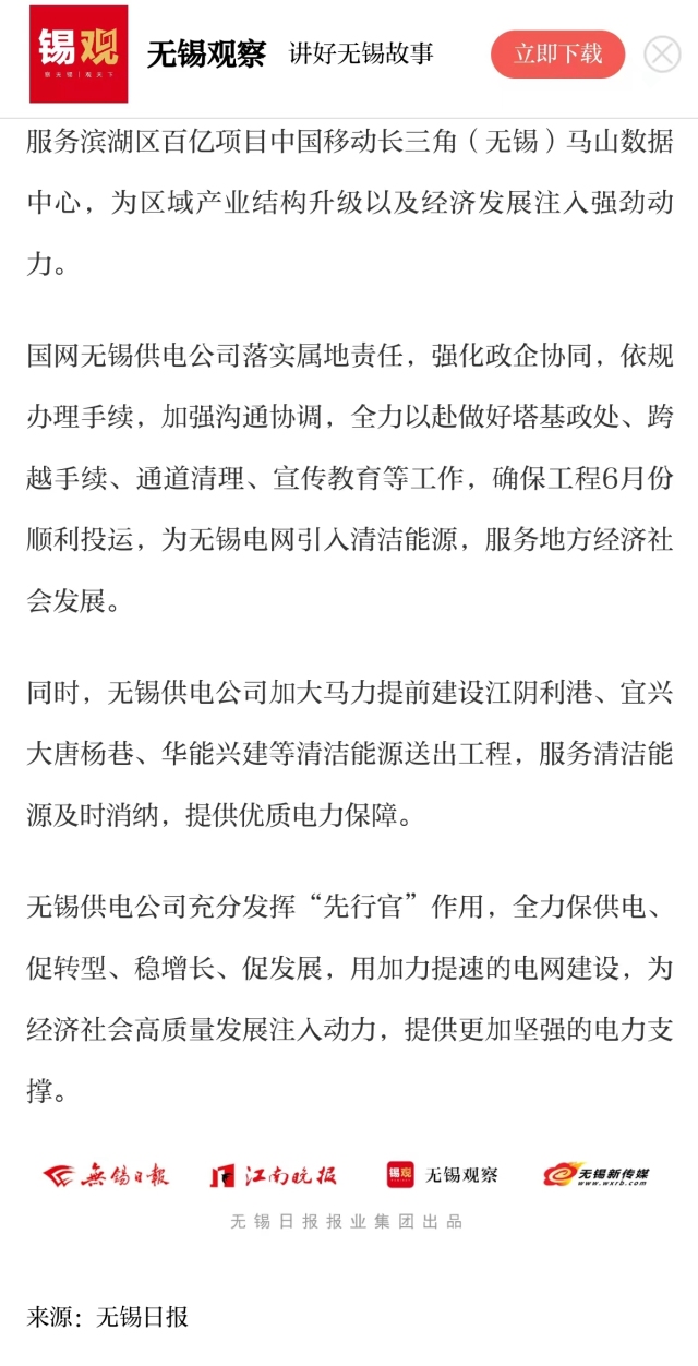 《无锡观察》:无锡供电诠释电力担当 服务地方发展-东台报业网