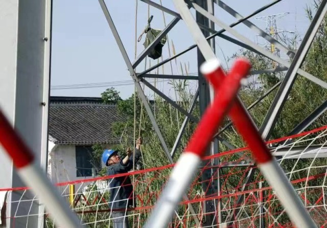 跟王怡恒一样的,还有其他33名登塔作业人员。这一天,他们用手中的扳手,将2万余颗螺丝牢牢地“焊”在了铁塔上,他们手里的一个个血泡也让“剪刀撑”牢固地撑起一座座巍巍的塔身。