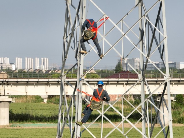 检查螺丝是否松动,然后紧固,再检查……从早上7点多开始,王怡恒已经重复了500多次这样的动作。这一天,他和搭档顾洪伟一起,将对110千伏垦商线1号铁塔上的1000多颗螺丝进行复紧。