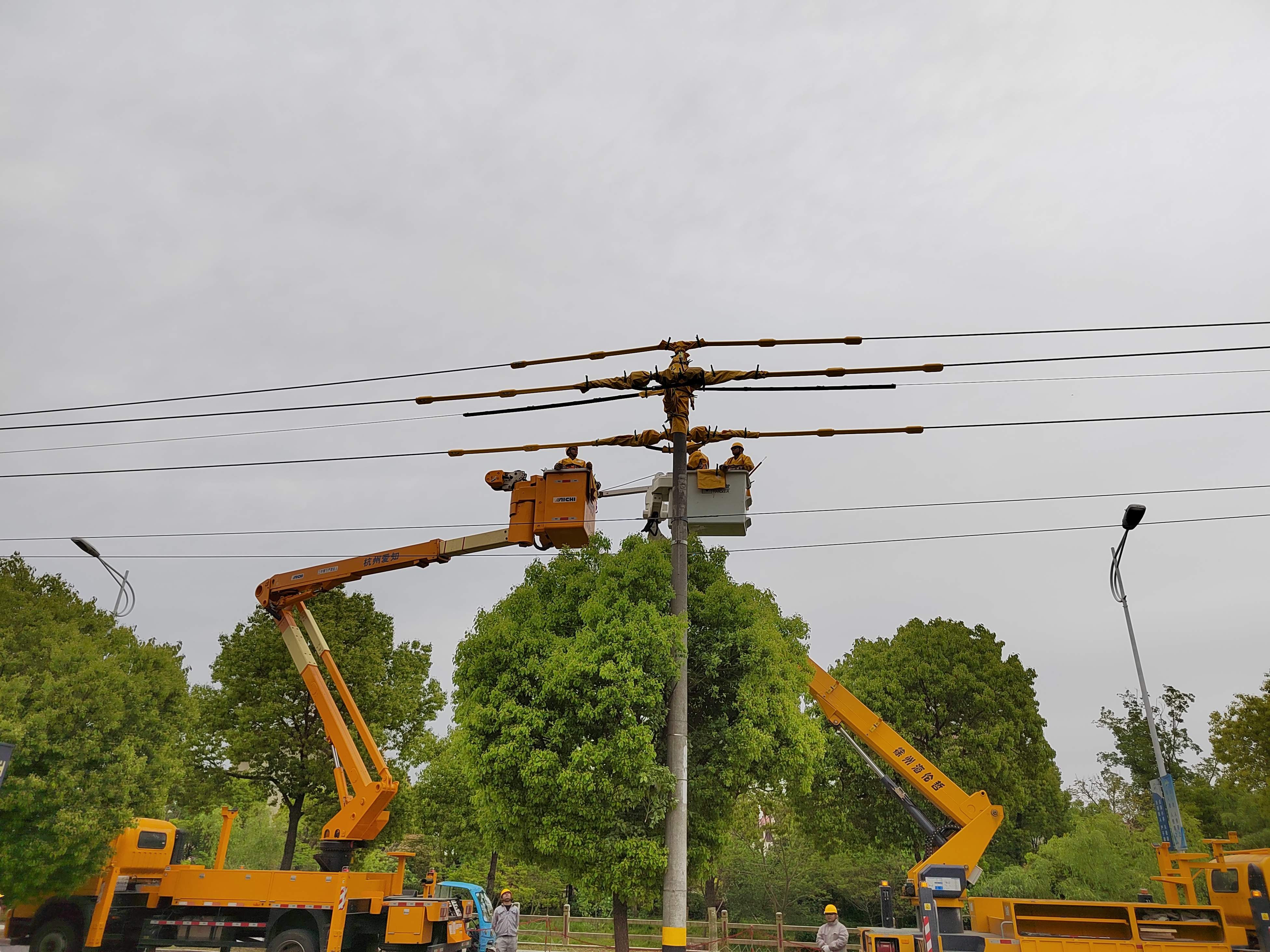 为确保此次带电作业顺利开展,带电班组织人员理论研讨,认真开展现场查勘和复勘,实地虚拟演练分析作业过程可能存在的危险点,对绝缘工器具及劳动保护用品进行检查和试验,制定施工方案和安全防范措施,成功完成此次直线杆改耐张杆带电作业工作,这标志仪征公司带电作业技术上了一个新台阶。