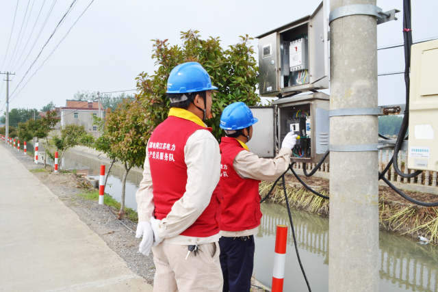 眼下,已进入夏季高温季节,正是“虾稻共养”基地进入打水增氧、换水用电的高峰期。为确保养殖基地用电安全可靠,当日,夏集供电所党员服务队员来到养殖基地,对涉及的供电线路、用电设备开展排查,及时消除隐患。