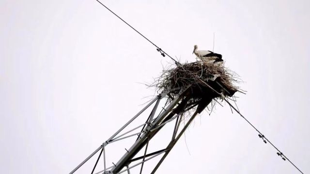 东方白鹳筑巢的地方位于如皋市城北街道志勇村,在一座49.7米高220kV输电线路直线塔的顶端。去年,如皋鸟类摄影爱好者宗周祥就发现它们在这里“定居”,并有了鸟宝宝。后来,宗周祥便一直关注着东方白鹳一家的动态。