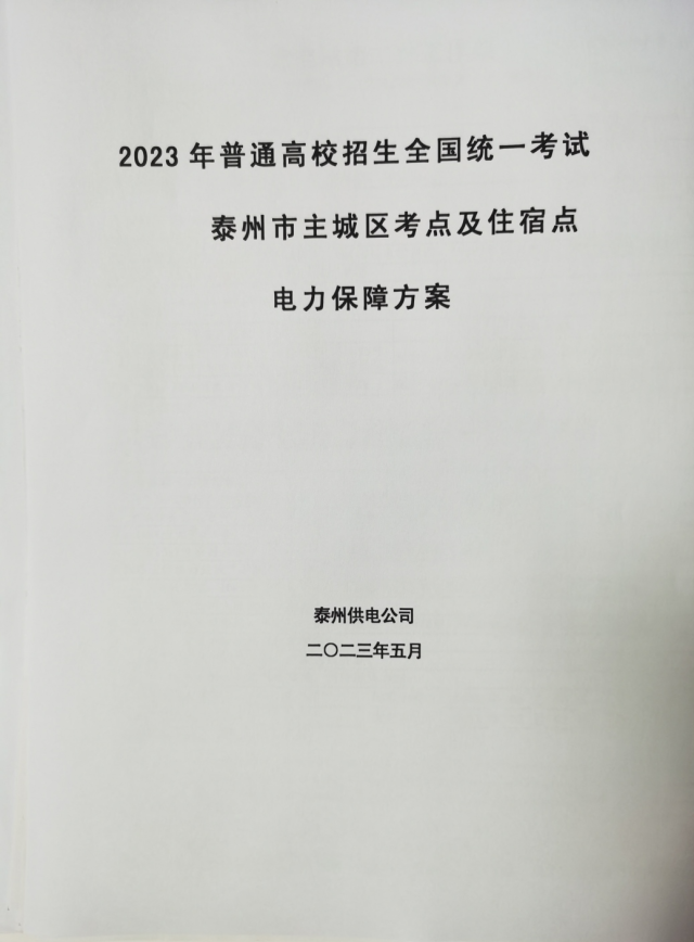 公司2023年高考泰州地区考点电力保障方案